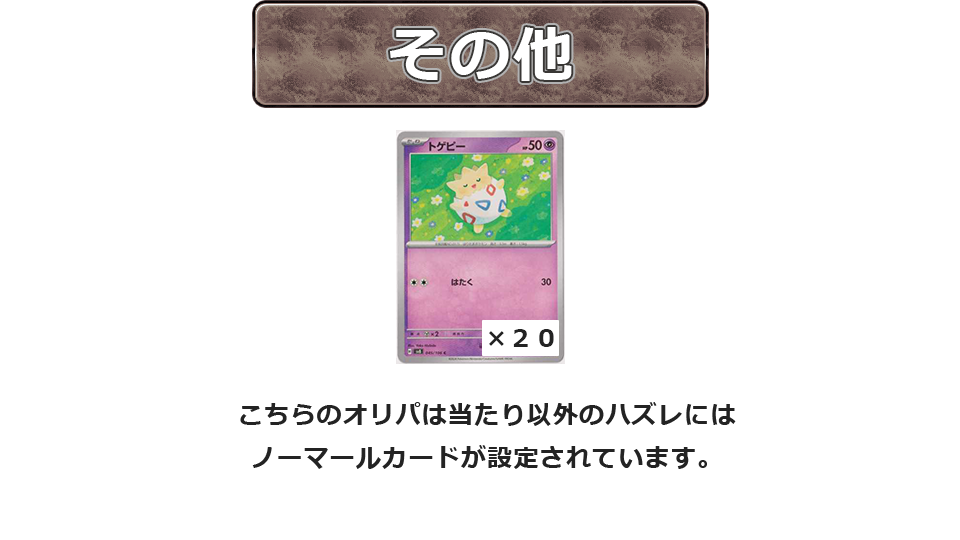 - BOXやパック外装に軽い傷や凹み、シュリンクの一部に小さな破れ、シール痕等がある場合がございます。